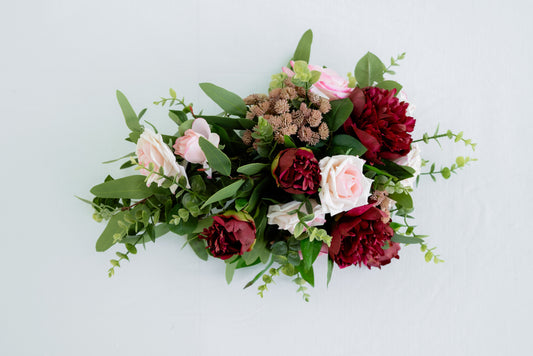 This collection includes Red and Pink Roses, Peony, and Eucalyptus, artfully designed to create a lush, romantic aesthetic full of texture and warmth. Each design features top-quality, lifelike florals that capture the softness and allure of fresh blooms.